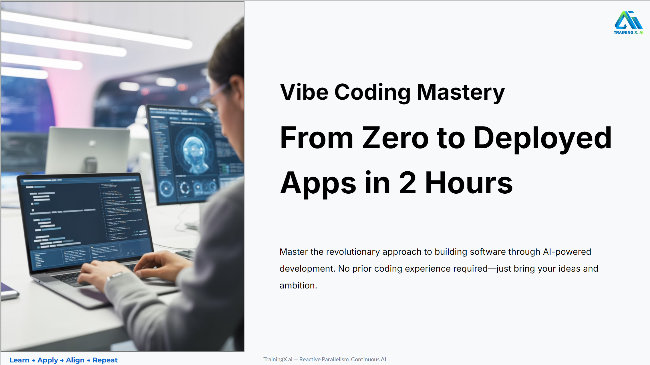 Master the revolutionary approach to building software through AI-powered development. No prior coding experience required—just bring your ideas and ambition.